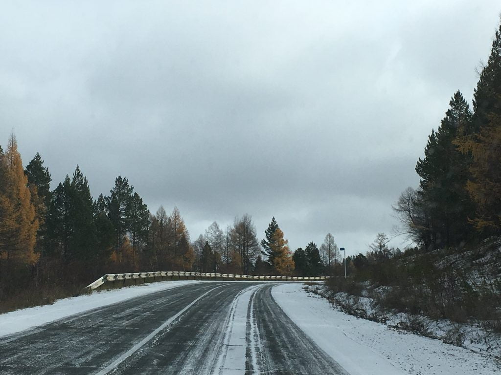 Como no teníamos tanto tiempo como para coger el bus de las 12;30 a Orkhon , negociamos un taxi para salir a las 9 de la mañana para allí. Ese día la temperatura había bajado mucho , tanto que hicimos más de la mitad del camino con nieve en la carretera