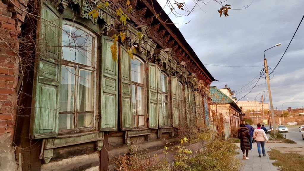Y desde allí el camino discurre por una zona de casas de madera típicas siberianas con sus alegres contraventanas pintadas de colores vivos