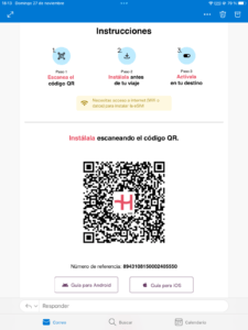 Solicité a Holafly la eSim y al poco tiempo me llegó a mi mail el famoso código QR con las instrucciones y un tutorial para instalarla. Deciros que como mi teléfono es antiguo las instrucciones eran un poco diferentes , pero aún así fui capaz de instalarlo y dejarlo desconectado hasta mi llegada a Buenos Aires .