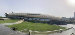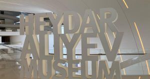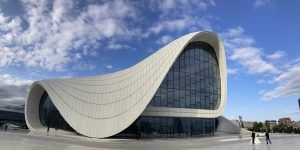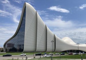 al magnifico edificio del Centro Cultural Heydar Aliyev construido por la famosa arquitecta iraquí Zaha Hadid