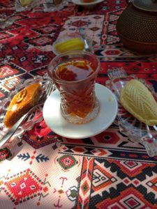 La comida muy rica y variada. Verdura , kebab, el Qutab súper rico una especie de crepe que podías encontrar en el borde de la carretera podía ser de carne o de queso y verdura. Usan mucho el cilantro en sus platos. Buenas ensaladas de tomate. En los restaurantes al borde del Mar Caspio un pescado súper fresco. Y de postre los riquísimos baklavas esos dulces de pistacho y miel. Y todo a precios baratísimos.