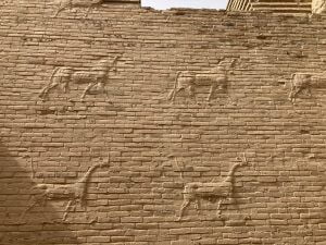 La visita empieza por la Puerta de Isthar, mejor dicho la copia de la puerta pues la original todo el mundo sabe que se encuentra en Berlín en el museo de Pergamo.