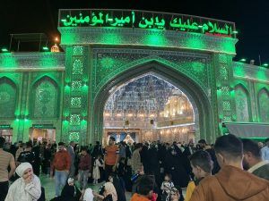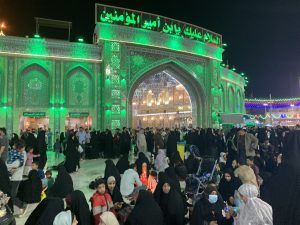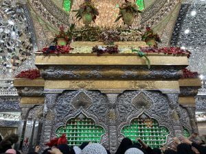 Llegamos el día del aniversario del nacimiento de Hussein y es una verdadera fiesta en Karbala. En esa mezquita a parte de él también están enterrados su familia los soldados que le acompañaban y sus amigos