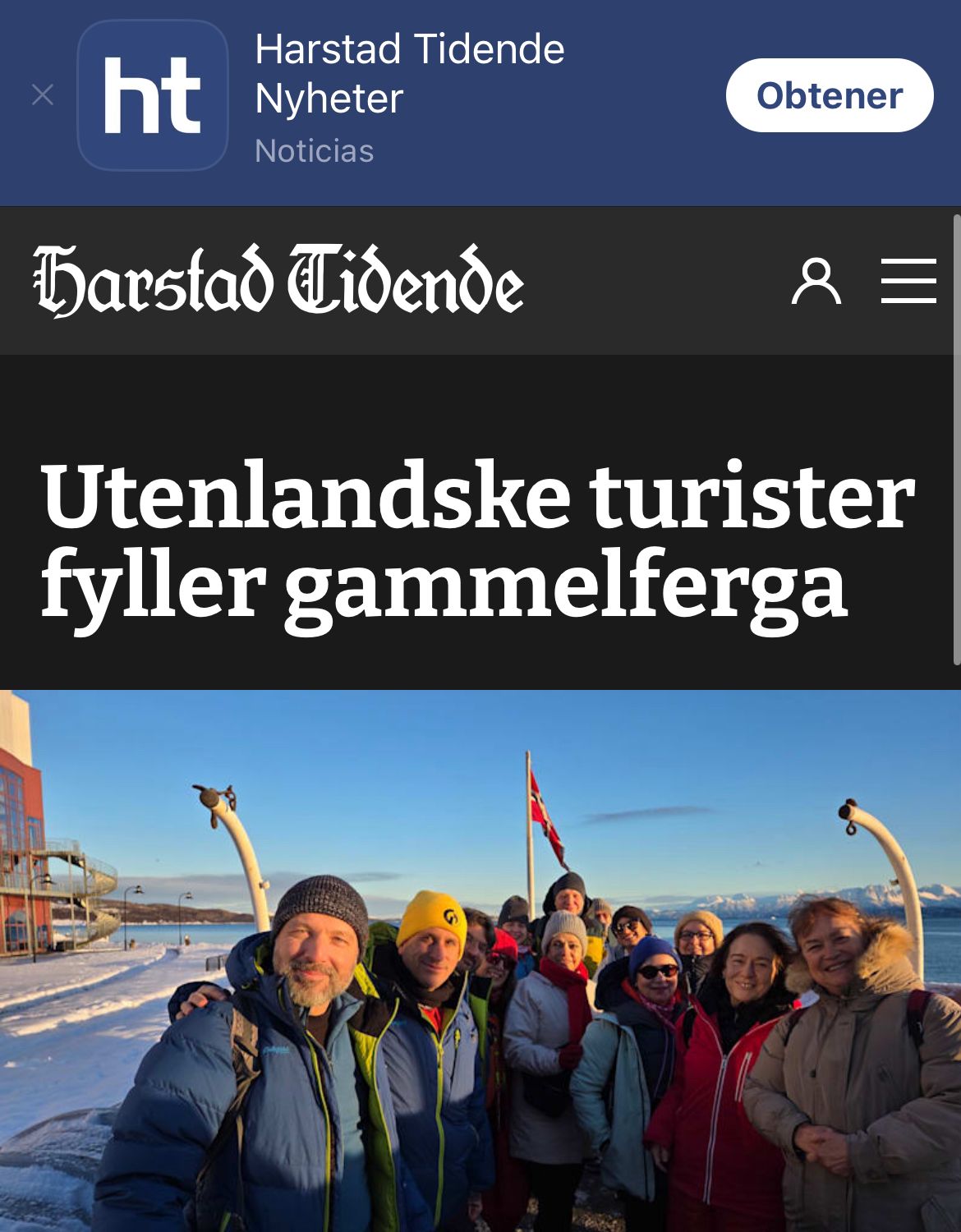 Al ser un barco histórico que estaba empezando a realizar paseos con turistas en el mar , vino un fotógrafo del periódico local a dar la noticia y salimos en el periódico de Harstad.
