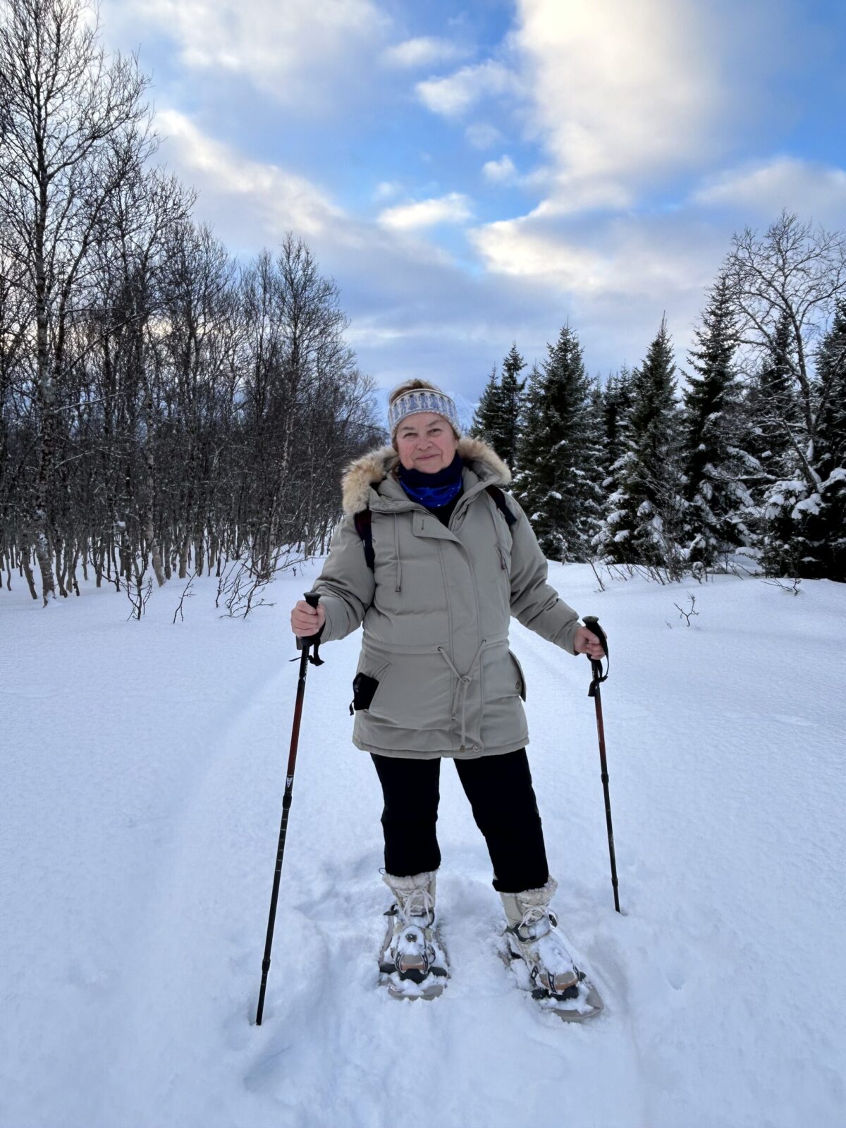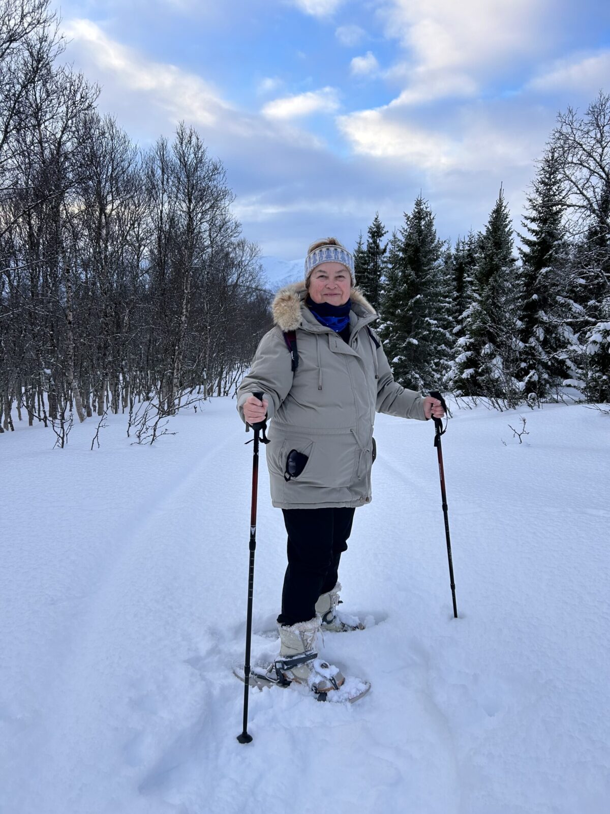 Nuestra primera actividad fue un paseo con raquetas de nieve. Nunca lo había hecho y resultó bastante fácil moverse con raquetas por la nieve.