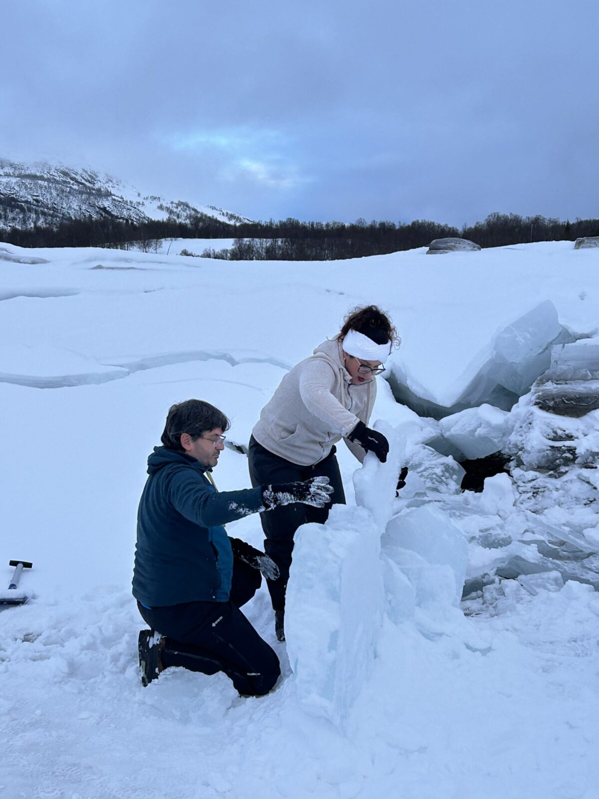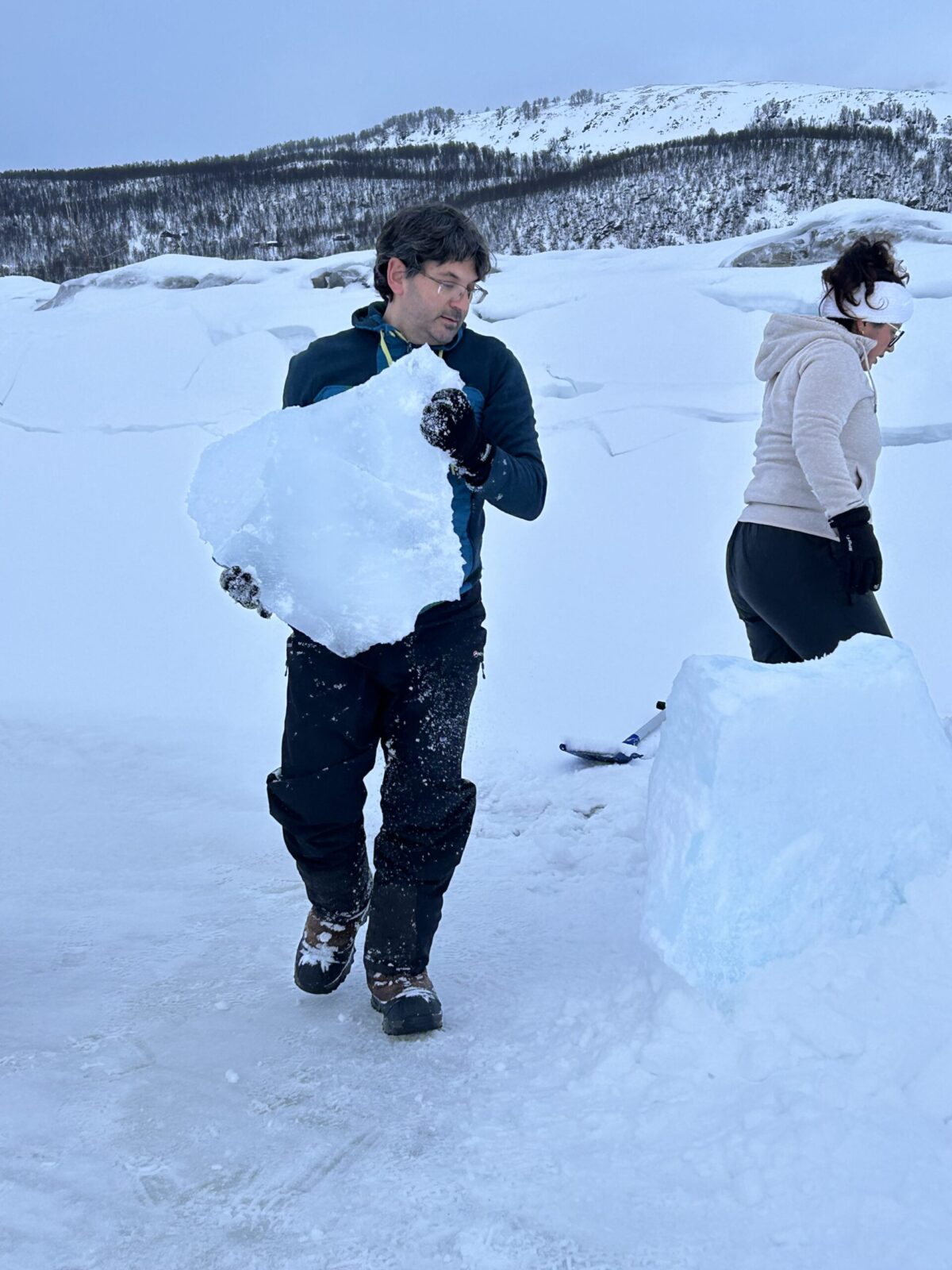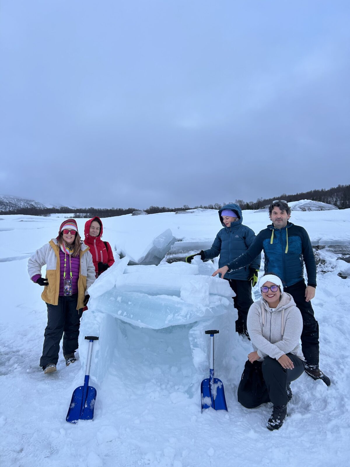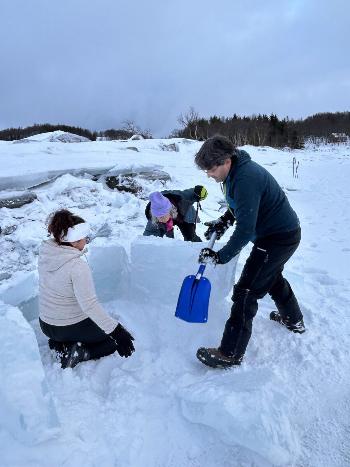 Otro de los días fue una marcha en un lago helado mientras unos cuantos del grupo hacían el trineo de perros . En el lago con la ayuda de unos bloques de hielo emprendimos la construcción de un igloo.
