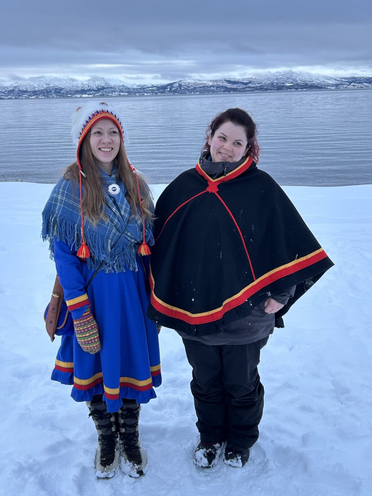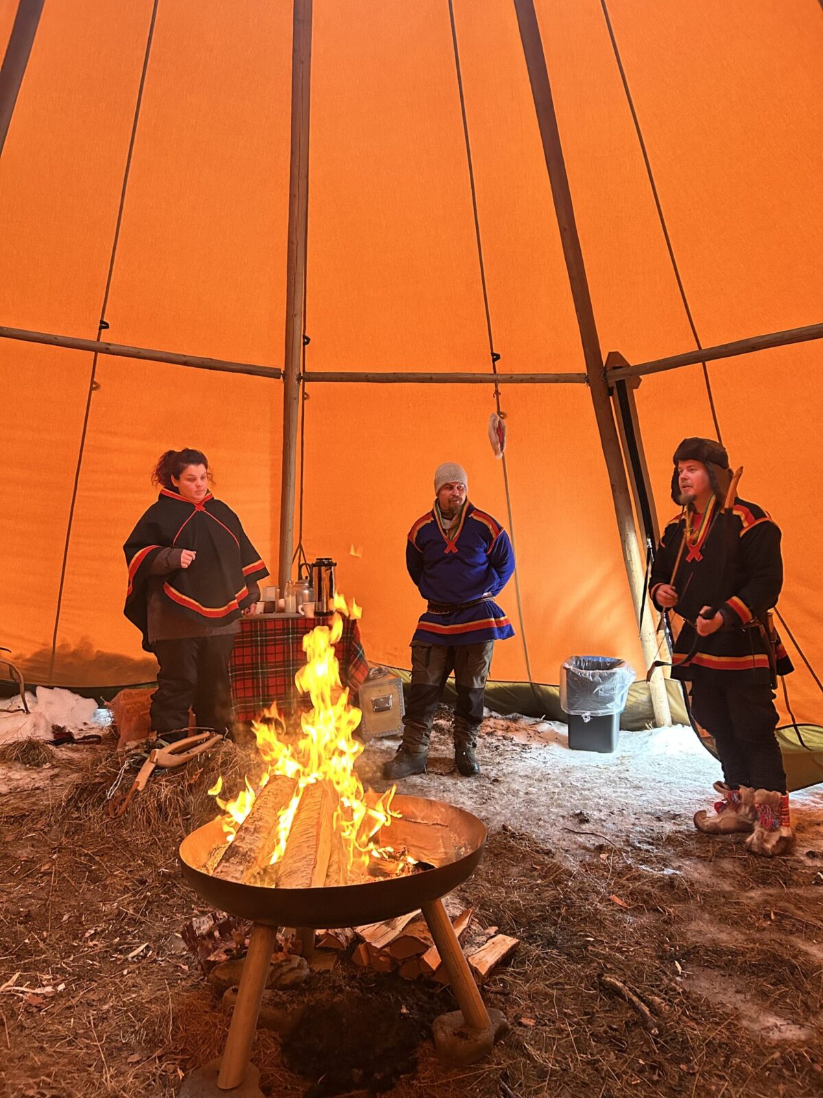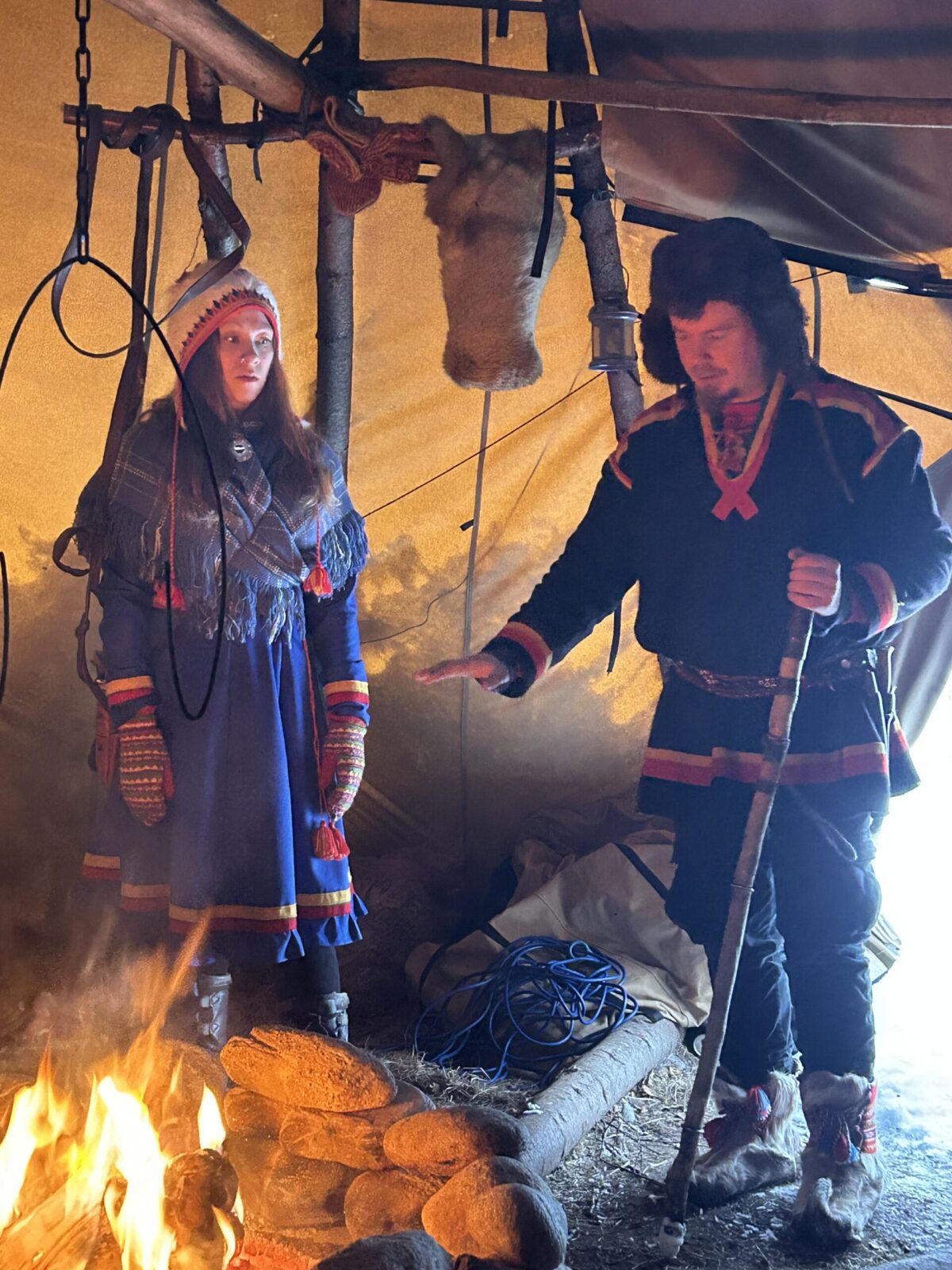 Tambien pudimos conocer de primera mano cómo viven los Samis en esta zona de Noruega . Se trata del único pueblo indígena del norte de Europa . Se dividen en varios grupos que se reparten entre Rusia Finlandia , Suecia y Noruega . La población estimada es de entre 50.000 y 80.000 individuos. Esta cultura está estrechamente ligada al pastoreo de renos , de hecho son los únicos en Noruega a tener permitido tener este animal . Tienen un parlamento que defiende sus derechos . En las escuelas además del noruego enseñan también su idioma . Su canto tradicional es el yoik y cuando suben con sus rebaños de reno a las montañas viven en un lavvo, un tipee parecido al de los indios . La identidad Sami , a pesar de estar ya muy mezclados, está profundamente arraigada en la naturaleza ártica . De hecho pudimos asistir a un festival sami en su día especial