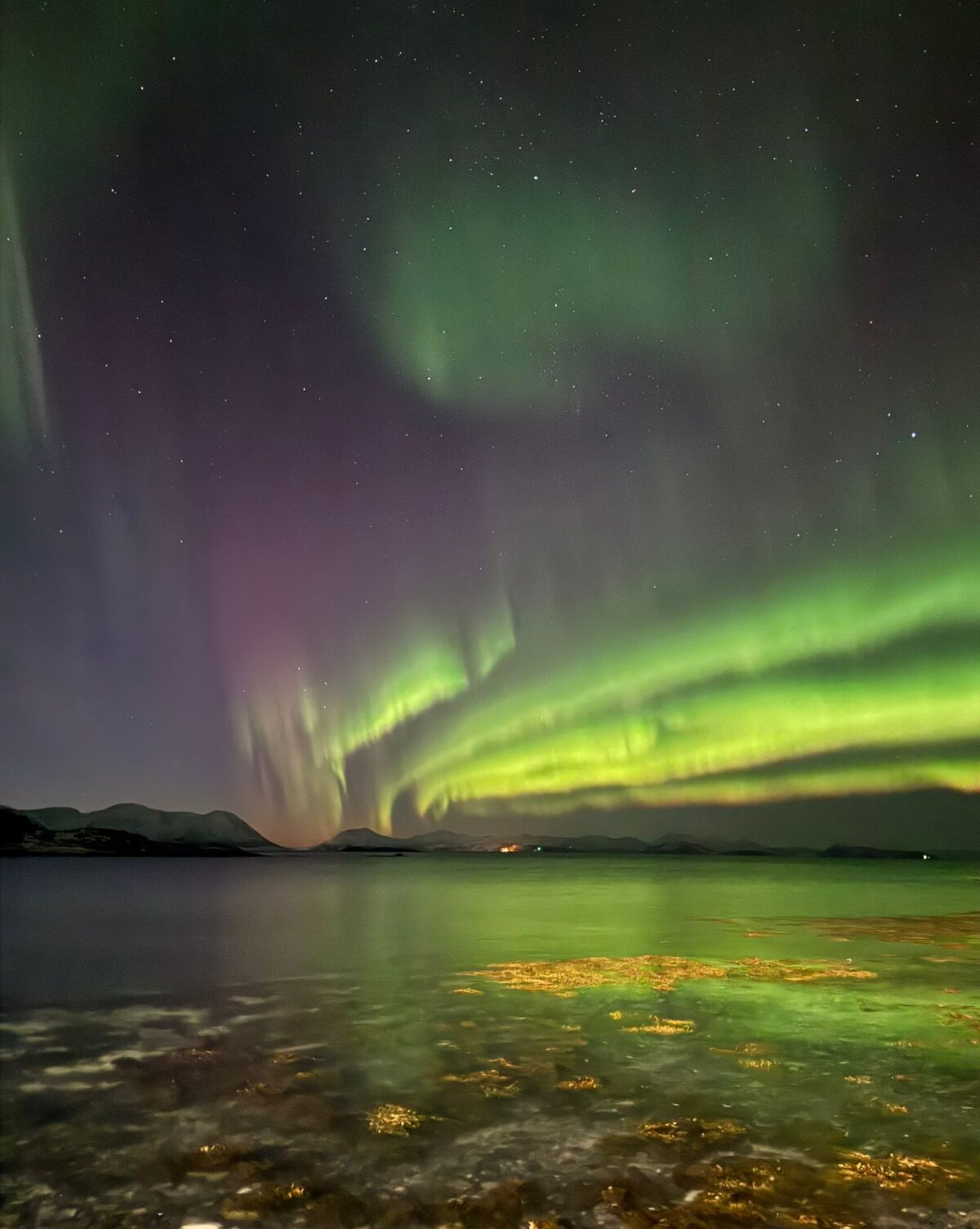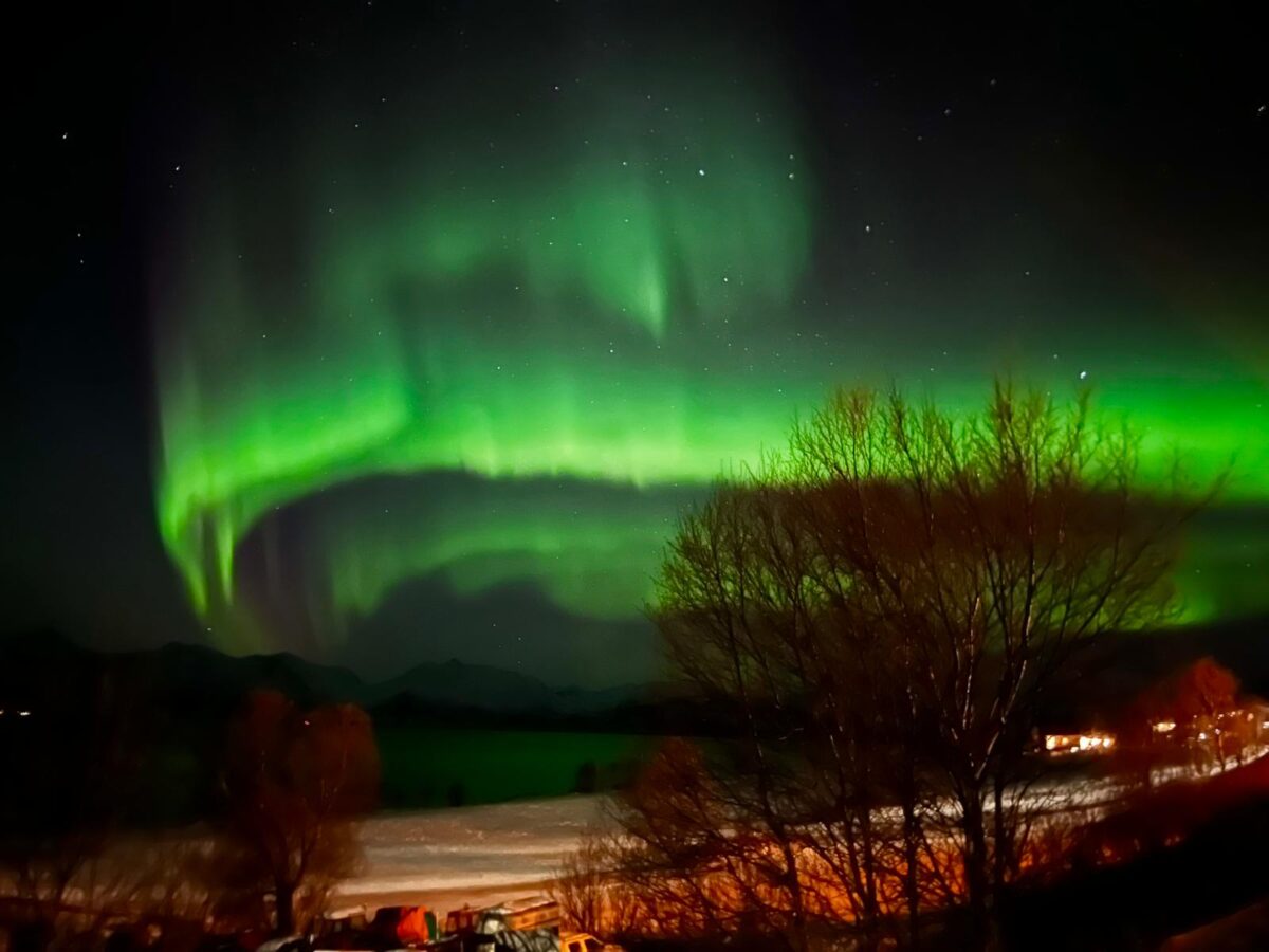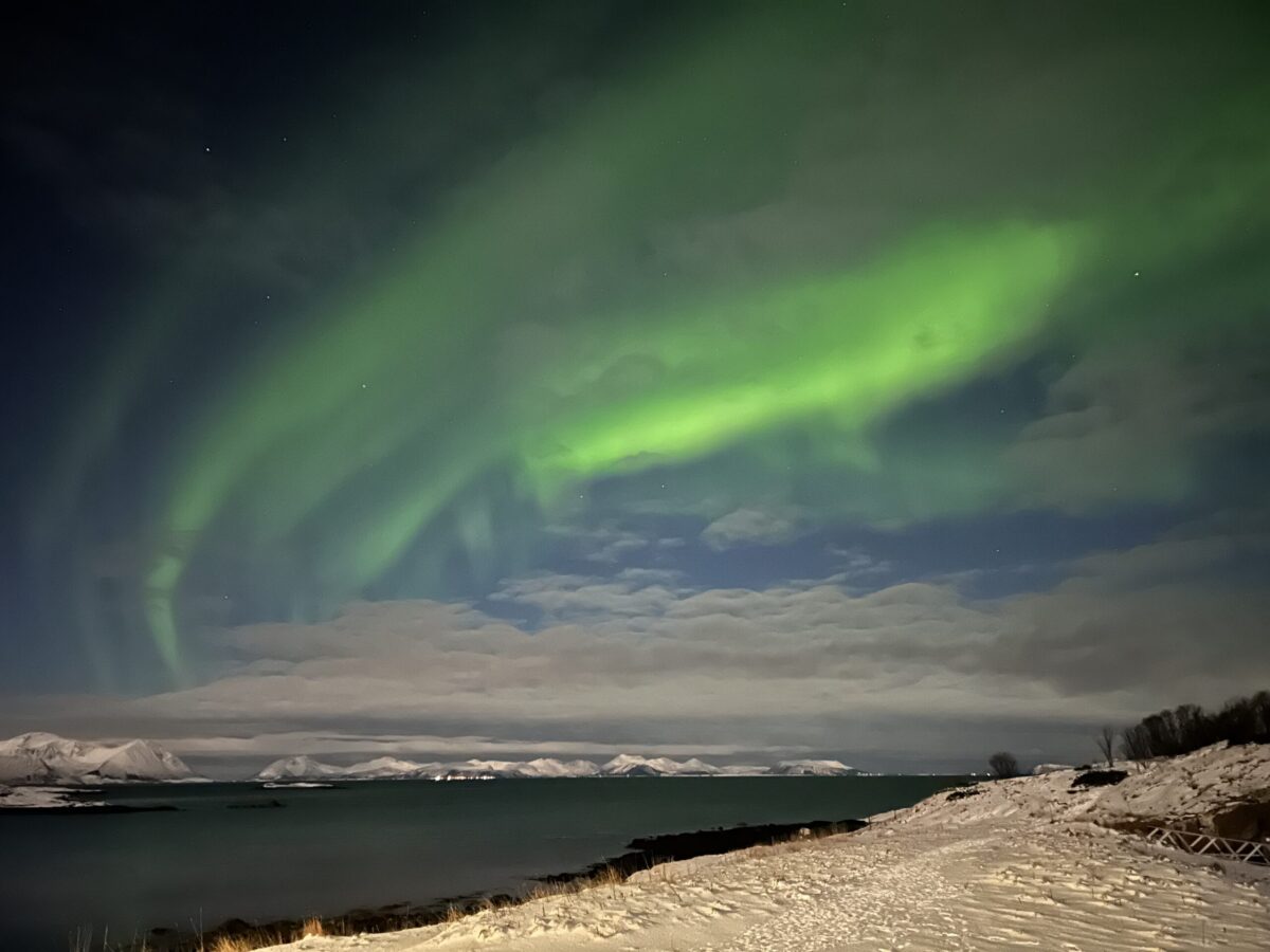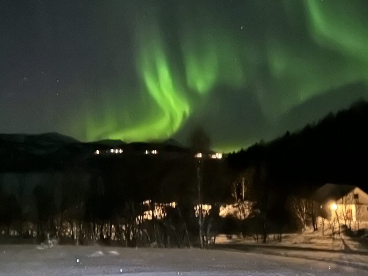 Llegamos al plato fuerte del viaje las alucinantes auroras que pudimos disfrutar de de 4 noches de las 6 que tuvimos allí. La mayoría de ellas auroras muy potentes. Estás se producen generalmente a unos 100 km sobre la superficie de la tierra en el óvalo cerca de los polos. Se forman cuando partículas cargadas eléctricamente chocan con el campo magnético de la tierra y son guiadas hacia los polos. Al impactar contra la atmósfera estas emiten luces de colores. Puede ser verde , la más común pero también hemos podido ver color malva. Para poder verlas a ojo humano hace falta que haya fuerte actividad solar y que esté el cielo despejado. Existen varias APP que te informan de la intensidad de la actividad.