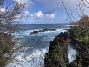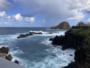 Esta localidad es famosa por sus piscinas naturales que han sido labradas en la roca volcánica. Es un destino muy popular entre los habitantes de Madeira. Para llegar allí pasas por un montón de terrazas de cultivo.