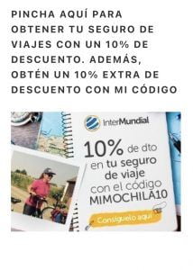 Ya sabes que a través de este blog puedes contratar tu seguro de viaje InterMundial con un 20% de descuento. Haz click en el siguiente enlace para disfrutar de tu descuento: