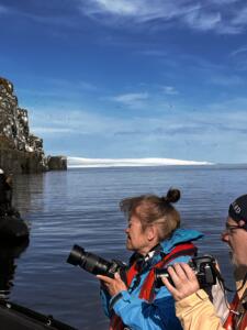 La salida de hoy es acércanos en las zodiacs a los acantilados donde anidan estos pájaros por miles. Asimismo estos acantilados tienen una interesante formación geológica formado por lava y piedra caliza .