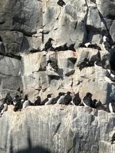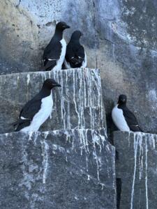 Nos pasamos el día en los puentes oteando con los prismáticos posibles animales. Vemos un par de focas , alguna morsa, frailecillos y los pájaros Guillemots .