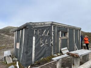 El desembarco de esta tarde se hace en una zona cercana al glaciar. Una zona llamada Texas Bar de Ida a una cabaña de este nombre en la orilla de la playa  . En su interior se encuentran un montón de botellas de alcohol , leña y utensilios para beber un trago  .