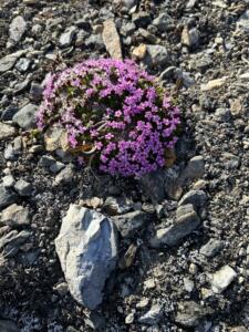 Tras el desayuno ponemos rumbo a tierra y llegamos a una playa cubierta de enormes piedras llamada Bockfjorden . Durante el trekking vamos descubriendo un montón de pequeñas flores. Aunque nos parezca imposible con esta climatología crecen multitud de pequeñas plantas.