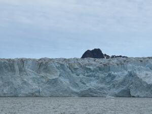 Al mediodía llegamos ante un impresionante glaciar llamado Monacobreen tiene más de 5 km de ancho y en el se puede ver perfectamente el deshielo de este glaciar . La parte central no es más que una montaña pelada. He podido observar como el deshielo es más patente en el Ártico que en l Antártida.