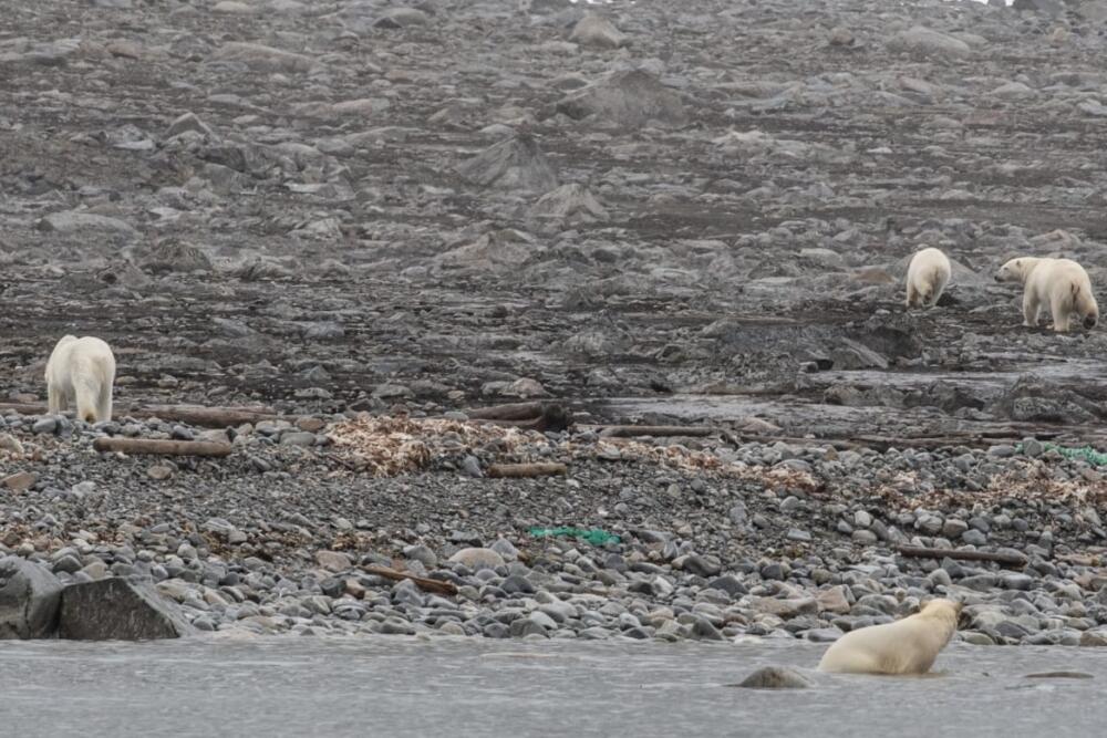 Hoy por la tarde el landing es para ver un montón de morsas que se juntan en la playa de Torellneset , mientras esperamos nuestro turno para ver las morsas encontramos unas deposiciones de oso polar. Michelle recoge una parte en una bolsa para llevarla a analizar en Longyearbyen. Pues  podria aportar datos interesantes sobre su alimentación .